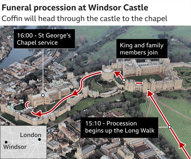 The Queen's funeral procession arrives in Windsor her final resting Funeral Procession Queen Elizabeth The nation has paid a final farewell to queen elizabeth ii, with a state funeral and military procession. The funeral procession for queen elizabeth ii was led by king charles iii and included members of the royal family. It has also published an. Buckingham palace has released the order of service for the funeral of queen elizabeth ii at westminster. Funeral Procession Queen Elizabeth.
